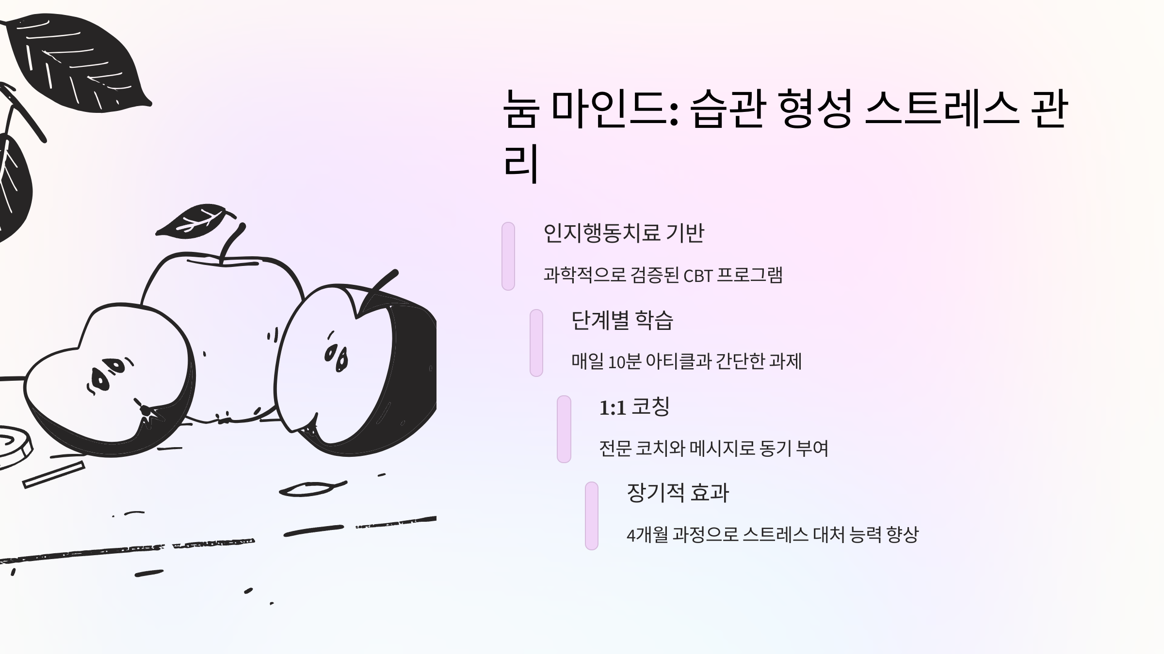 - 과학적으로 검증된 인지행동치료(CBT) 기반의 체계적인 커리큘럼